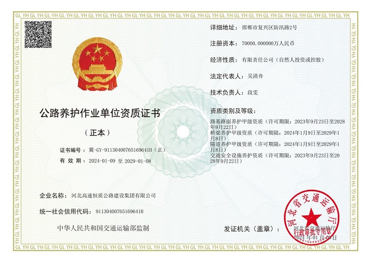 河北高速恒質(zhì)公路建設集團有限公司始建于2004年,前身是邯鄲市恒質(zhì)公路建設集團有限公司。2024年7月成為河北高速公路集團有限公司二級子公司,現(xiàn)有職工500余人,下轄18家子公司13個分公司,參股公司3家 ,注冊資本7億元,是一家集公路工程施工、路用材料研發(fā)生產(chǎn)、試驗檢測、瀝青貿(mào)易、公鐵物流于一體的多元化、綜合性單位,國家級高新技術(shù)企業(yè),河北省專精特新中小企業(yè),河北省首家瀝青拌合環(huán)保引領(lǐng)性企業(yè)。公司擁有公路工程總承包壹級、公路交通工程(公路安全設施)專業(yè)承包壹級、機電工程施工總承包貳級、電力工程施工總承包貳級、市政公用工程施工總承包貳級、建筑工...